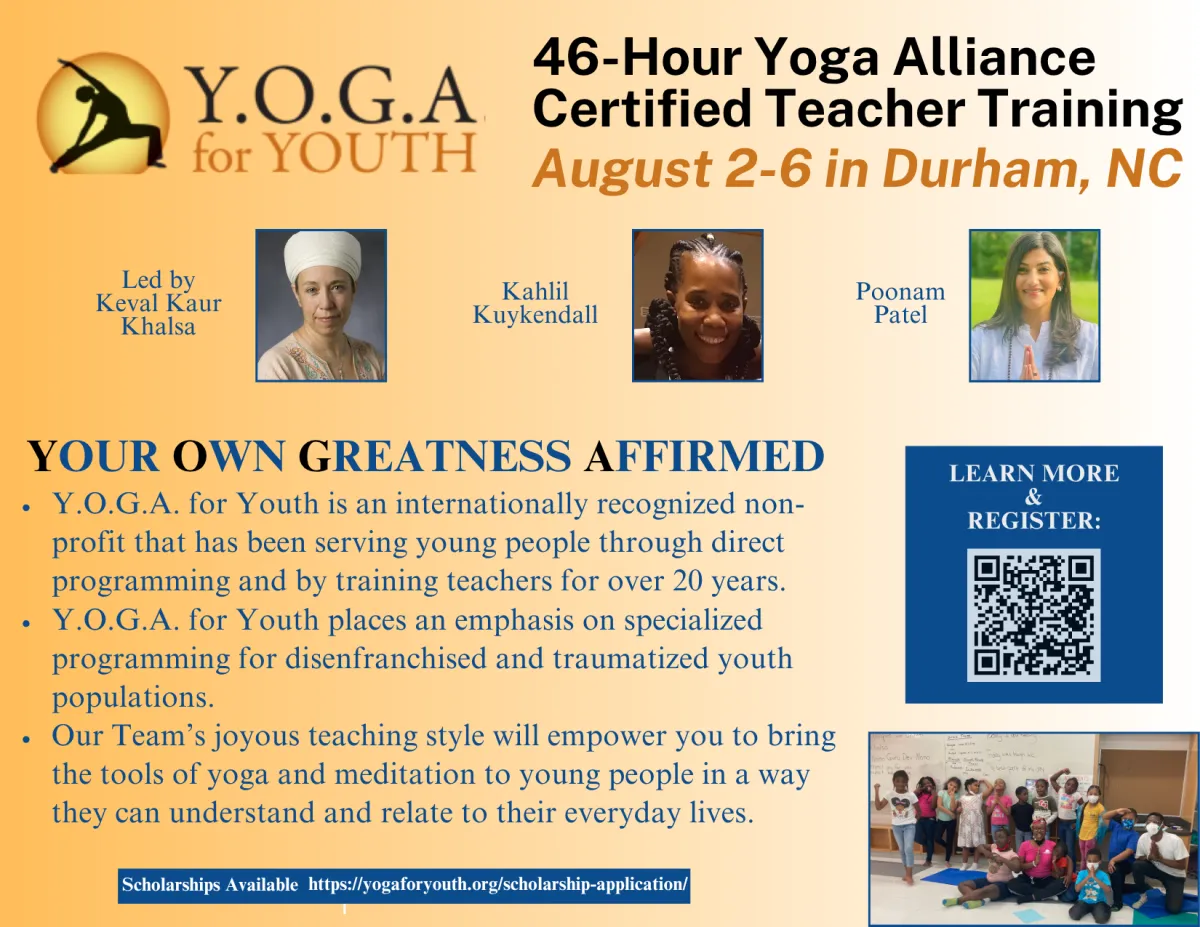 Join our Y.O.G.A. for Youth teacher training, designed for individuals eager to teach yoga to underserved youth. This comprehensive course covers everything from crafting a curriculum to implementing trauma-informed yoga practices and mastering classroom management.